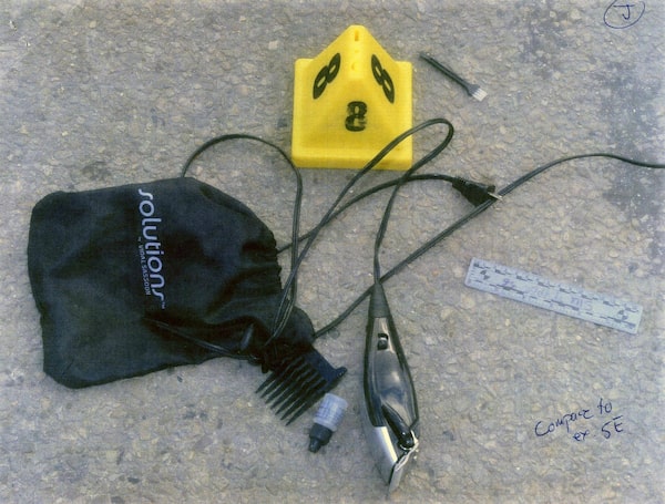Constable Swan-Tuomi could see that the cord was wrapped around Mr. Abdi's stomach. These were the "horizontal lines" Constable Lancia had noted. He manipulated the claw to pull on another section of cord and the robot arm rose to reveal a black-and-silver device: Vidal Sassoon hair clippers.