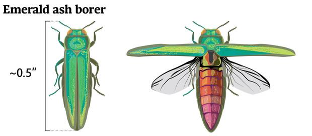 The infestation of the invasive, wood-boring beetles is currently around its peak, depending on location. The insects are expected to destroy nearly all the region's ash, killing about 3.2 million public and privately owned trees representing 10 per cent of the overall population.