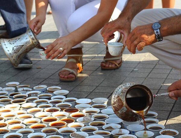 Participants pour coffee in Istanbul to commemorate the 1995 Srebrenica genocide on July 11, 2012.
