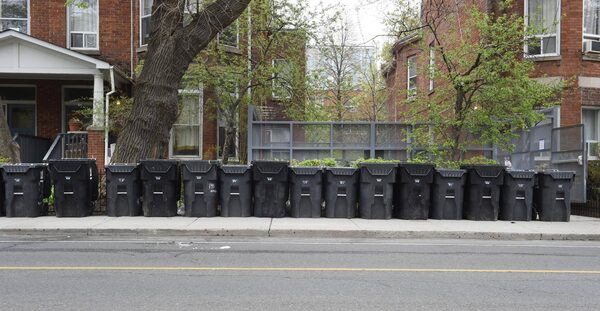 A long row of garbage bins lines the sidewalk outside homes on Beverley Street in downtown Toronto on May 13, 2014.Fred Lum/The Globe and Mail