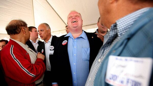 Toronto mayoral front-runner Rob Ford works a crowd on Sunday, Sept. 19.