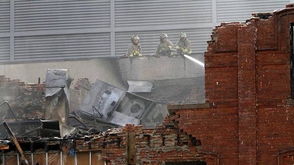Firefighters work to extinguish a blaze that destroyed a heritage building at Yonge and Gould Streets on Jan. 3, 2011.Fernando Morales/The Globe and Mail