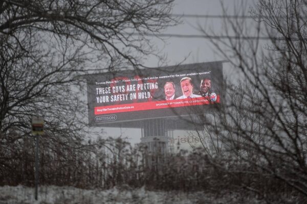 The Toronto Police Association has taken its feud with the city to new heights, after a billboard went up on Monday slamming staffing cuts to the police force.