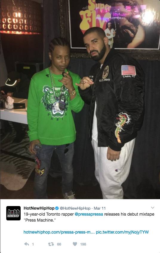 "Pressa is on everybody's radar," said Eb Reinbergs, entertainment lawyer and founder of the Canadian Urban Music Conference. "He's one of the top two or three hottest rappers in city."