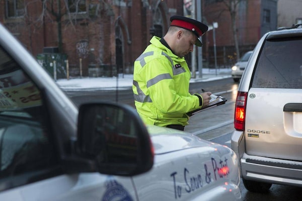 A Toronto police officer issues a ticket to an illegally parked car on Jan. 5, 2015.CHRIS YOUNG/The Globe and Mail