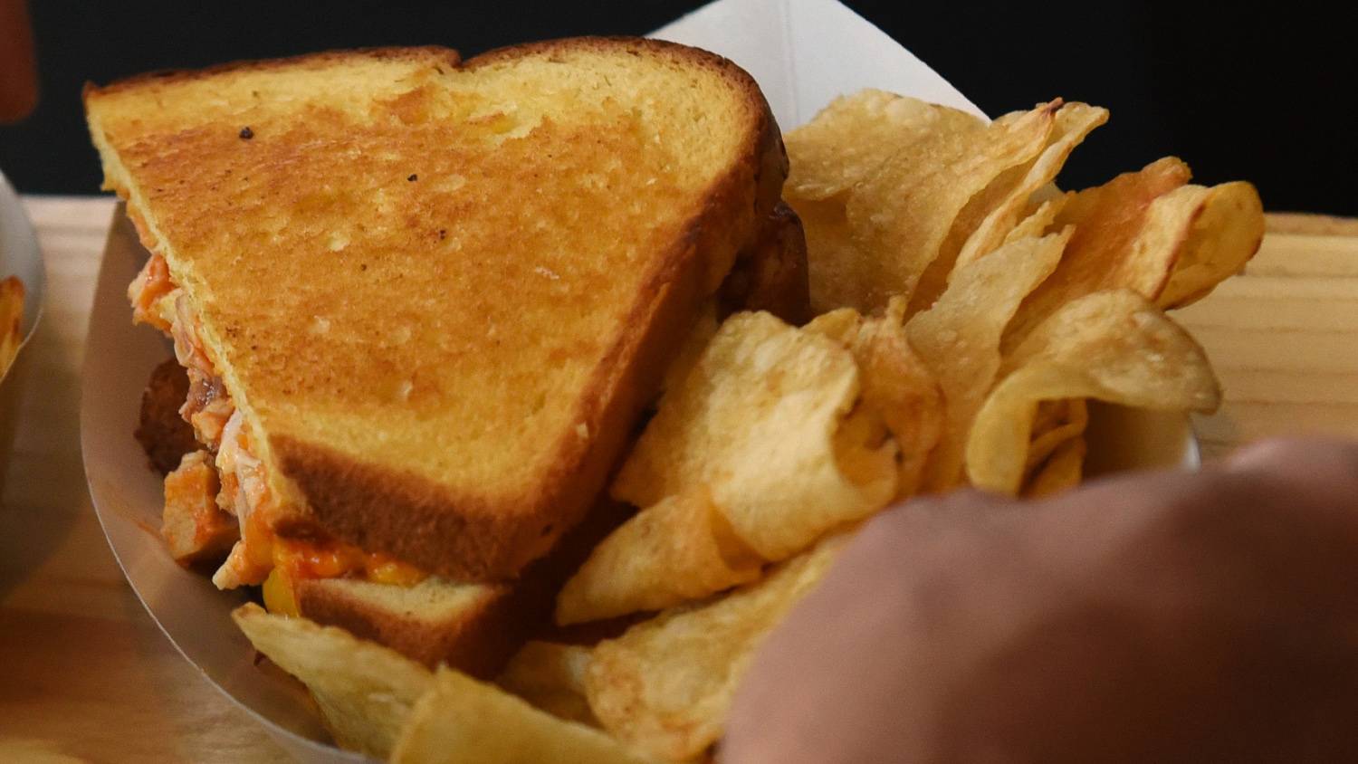 Buffalo chicken grilled cheese (MacCheesy’s, $12) The grilled cheese sandwich goes south of the border with Buffalo sauce, chicken and cheese, served on sweet Hawaiian bread. It comes with kettle chips on the side.