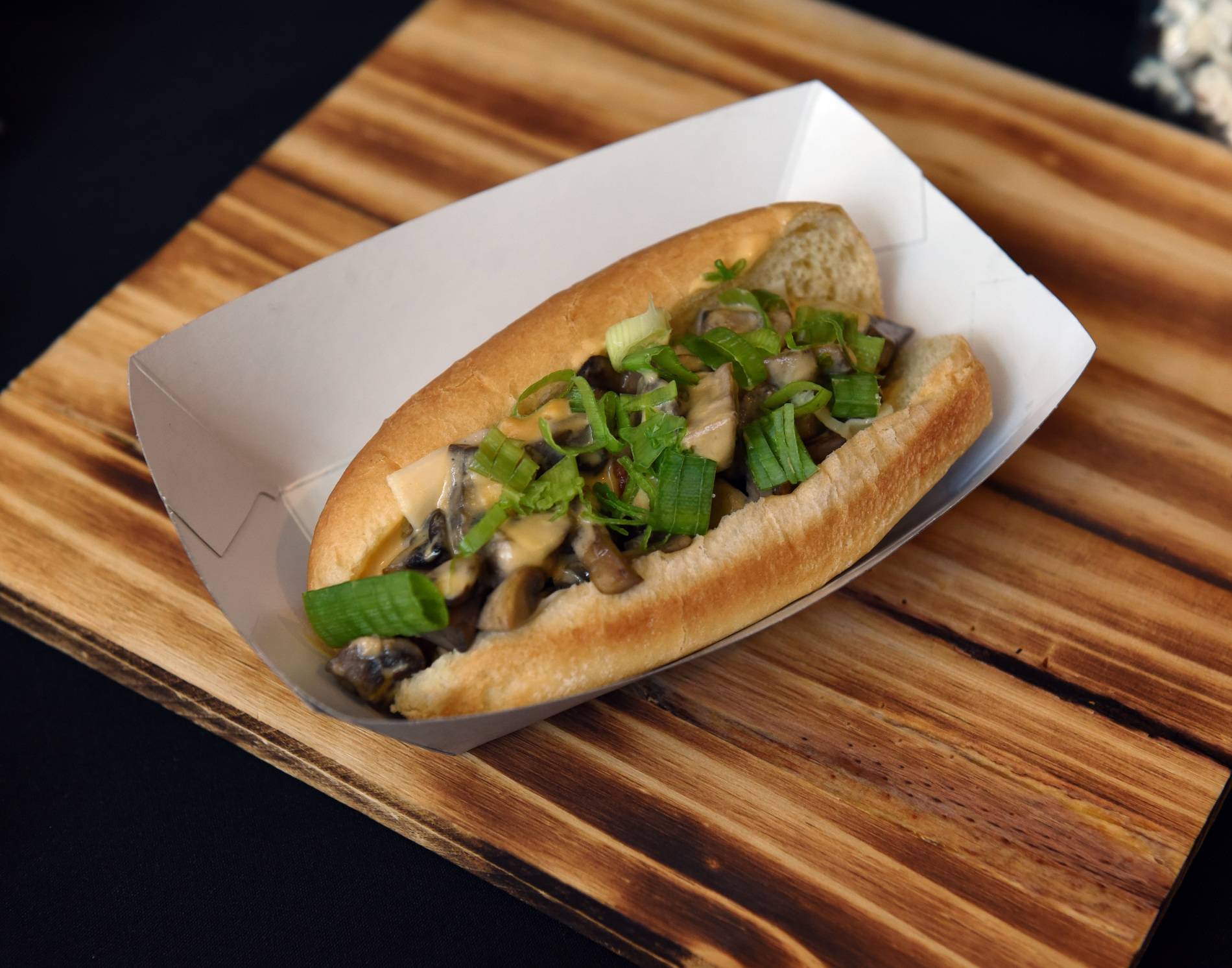 Mushroom bacon dog (The Dog House, $9) A special treat is the beef sausage wrapped in bacon, topped with sautéed mushrooms and green onions. The Swiss cheese and mozzarella makes this a well-rounded and hearty meal.
