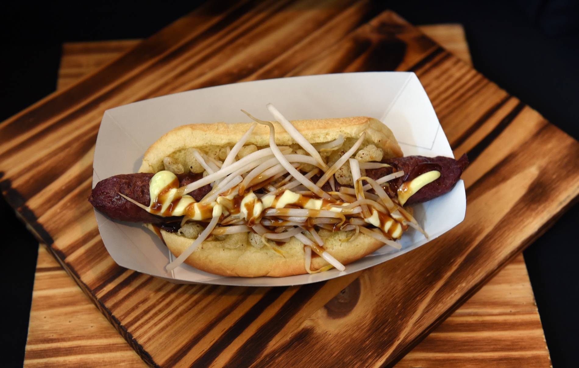 Sumo dog (The Dog House, $9) This Asian take on the traditional hot dog has a Japanese-style sausage, tempura bits, topped with bean sprouts and drizzled with wasabi mayo.