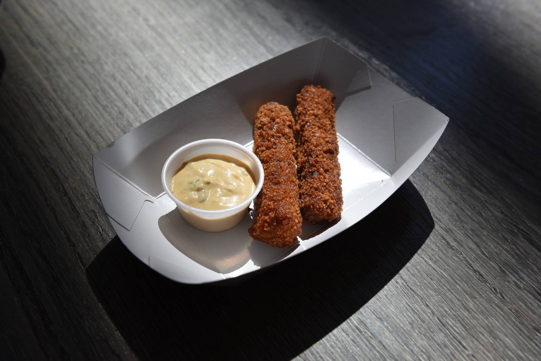 Cheeseburger fries (concession stands outside sections 106 and 311, $9 for four pieces) The invention includes ground corned beef, cheese, pickles, ketchup, mustard – all moulded, deep fried and served with a secret dipping sauce on the side. Chef Zielinski would not reveal the savoury sauce’s ingredients and thus, it remains a secret.