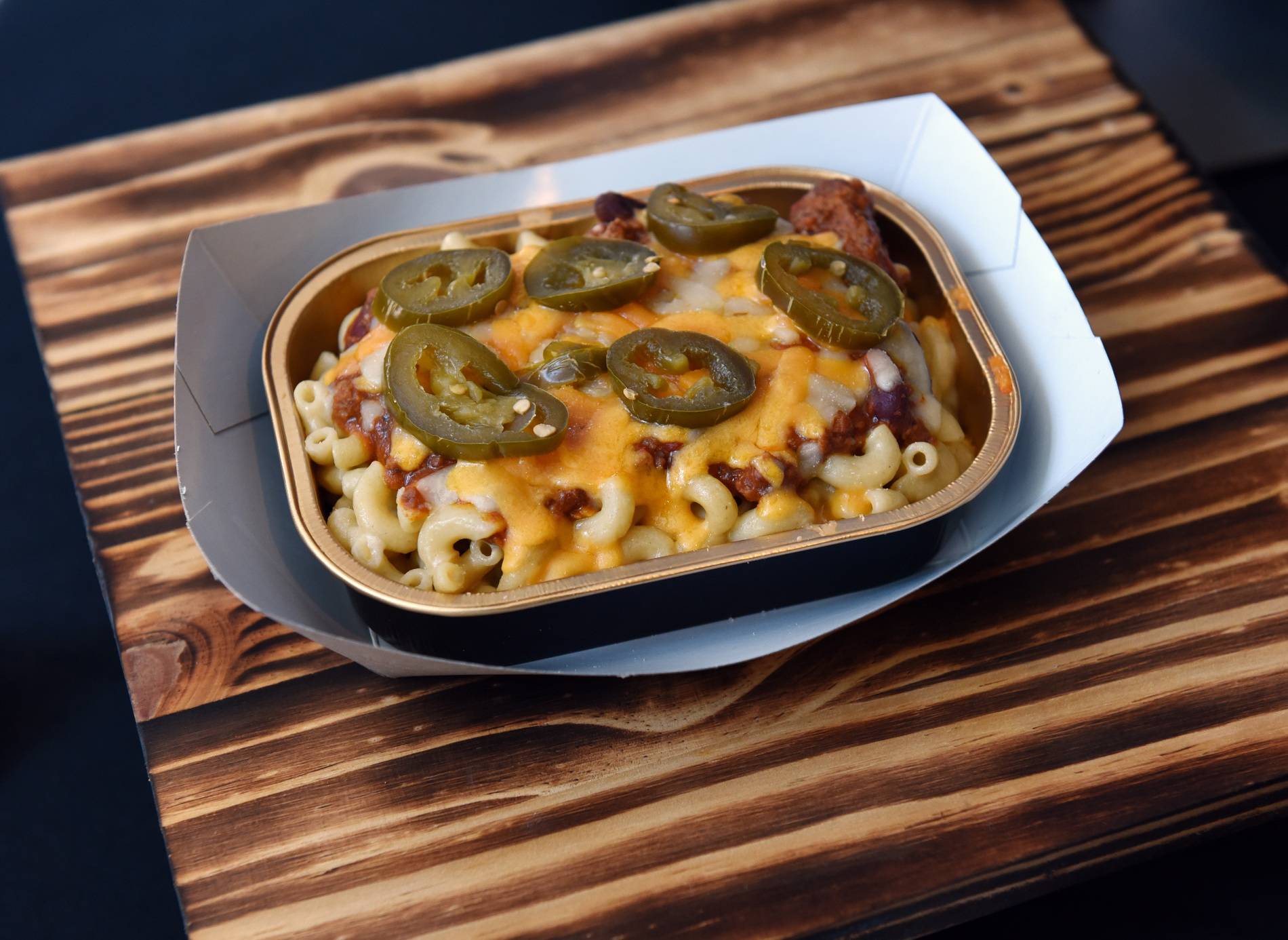 Tex Mex mac and cheese (MacCheesy’s, $9) Chef Zielinski warns fans that this dish is for those with “serious hunger.” The concoction has jalapeno peppers sitting on top of a bed of mac and cheese with house-made chili throughout.