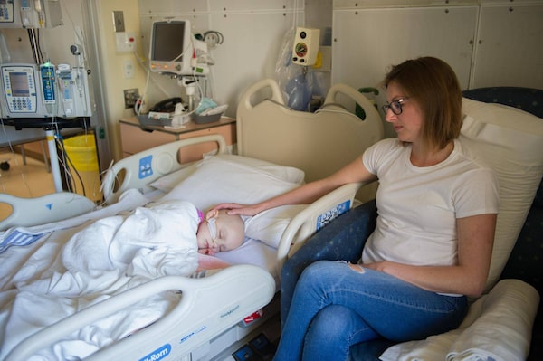 Seri Stenning sits by the bedside of her three-year-old daughter, Stella Stenning, who recently underwent a bone-marrow transplant at the Hospital for Sick Children in Toronto, Wednesday.Galit Rodan/The Globe and Mail