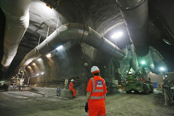 Crossrail workers work in the tunnel about 35 meters underground at Whitechapel, in London, Friday, April 4, 2014. The massive Crossrail project will link many parts of the London transport network. A London transit planner says Toronto needs to restructure its planning process so that it is not vulnerable to drastic changes with every election cycle.Lefteris Pitarakis/The Associated Press