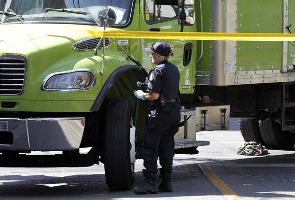 Toronto Police investigate an accident at the corner of Brant and Adelaide Streets in Toronto that claimed the life of a 30-year-old woman after she was struck by a delivery truck.Deborah Baic/The Globe and Mail