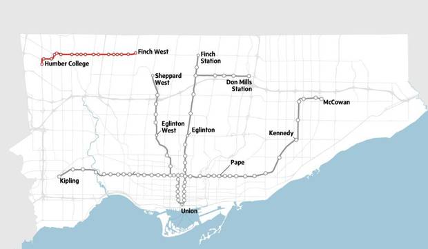 Envisioned as a surface route, running 11 kilometres between the forthcoming Finch West station and Humber College, this proposal has raised the ire of local councillor Giorgio Mammoliti. Metrolinx is holding firm on the $1.2-billion project, though, and a request for proposals to design, build, finance and maintain the line was issued in February. According to the most recent information, the LRT is scheduled to open in 2021.