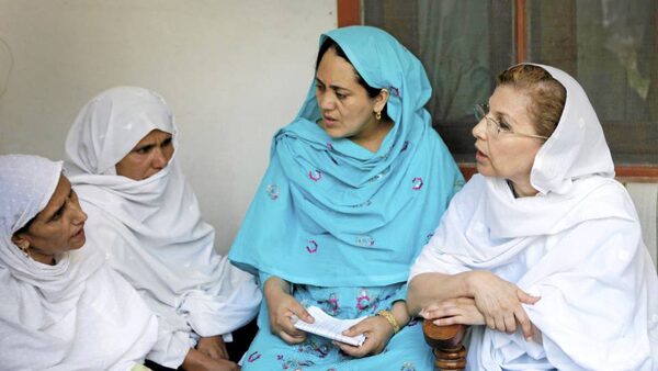 Zebu Jilani, right, speaks to women in Swat Valley, Pakistan, in July, 2010.