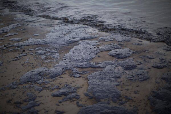 Spilled oil covers the beach at Refugio State Beach as the Channel Islands are seen in the distance on May 19, 2015 north of Goleta, California.David McNew/Getty Images