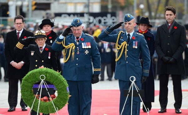 Veterans parade during Remembrance Day ceremonies at the National War Memorial in Ottawa.Chris Wattie/Reuters