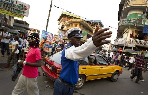 A police officer directs traffic in a bustling downtown intersection in Freetown, Sierra Leone.Peter Power/The Globe and Mail