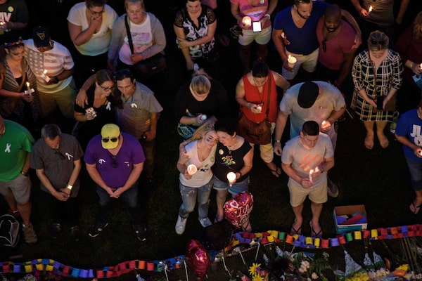 With speeches, music and prayers, they honoured those lost in the worst modern mass shooting in American history. There were calls for unity and for stronger gun laws. As the sun set, a multitude of small candles lit up the centre of the city. A bell tolled, once for each victim, slow and endless.