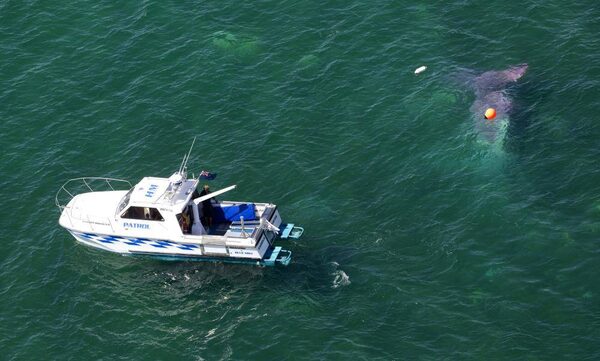 A police boat circles a crashed plane in Lake Taupo in New Zealand Wednesday, Jan. 7, 2015.Alan Gibson/The Associated Press
