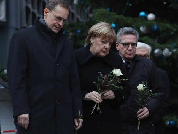 Ms. Merkel, sombre and dressed in black, visited the site of the attack on Tuesday morning, leaving a white rose in honour of the 12 people killed. Dozens more were seriously injured. "We don't want to live with the fear of evil paralyzing us," she said. "We will find the strength for a life as we want to live it in Germany: free, united and open."