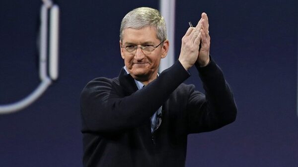 In this Monday, March 9, 2015 photo, Apple CEO Tim Cook applauds at the conclusion of the Apple "Spring Forward" launch event in San Francisco.ERIC RISBERG/The Associated Press