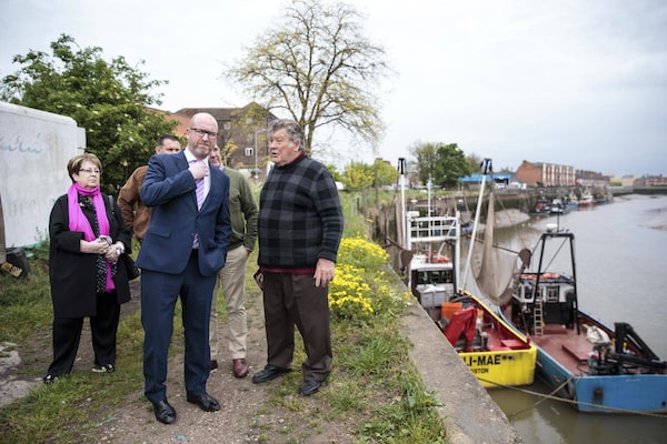 UKIP Leader Paul Nuttall chats with local fishermen at the quayside as he campaigns in Boston on May 12, 2017 in Boston, United Kingdom. Mr Nuttall has chosen to stand in the Boston and Skegness seat in the June 8th general election. The town of Boston in Lincolnshire voted with a 75% majority to leave the European Union during the 2016 referendum, giving it the highest proportion of Brexit voters in the UK.Jack Taylor/Getty Images