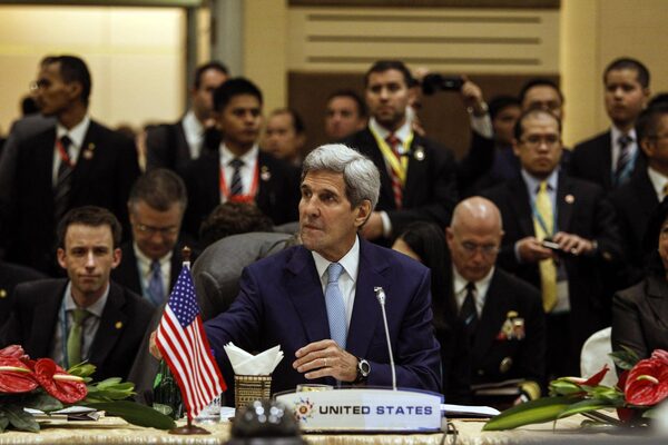 U.S. Secretary of State John Kerry waits before the East Asia Summit Foreign Ministers' Meeting in Kuala Lumpur, Malaysia on Thursday, Aug. 6, 2015.Joshua Paul/The Associated Press