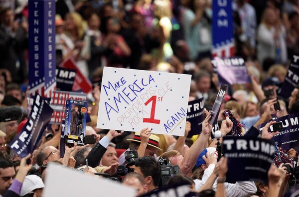 So does a generous bulk of the Republican party, whose establishment he finally vanquished on Tuesday when convention delegates officially chose him as their nominee. Seen as an improbable challenger with little political experience in a field of almost 20 contenders, the mercurial and controversial billionaire has turned the party inside out, bringing in new cadres of blue-collar and middle-class voters. He has also alienated many of its more traditional leaders, who have stayed away from the convention in protest of his demagogic rhetoric about immigrants.