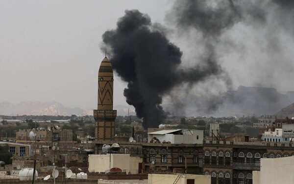 Smoke billows from the military academy during a Saudi-led air strike in Yemen’s capital, Sanaa, on Wednesday.KHALED ABDULLAH/Reuters