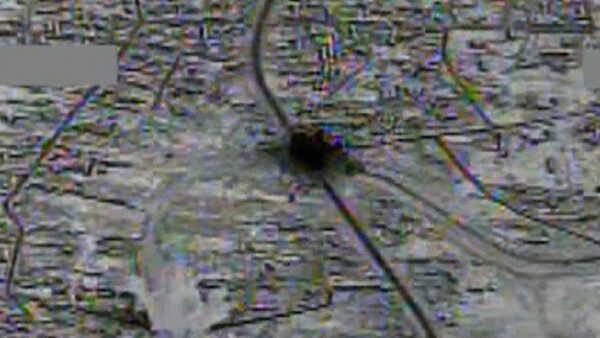 This image made from gun-camera video taken on July 4, 2015 and released by United States Central Command shows an airstrike on a main road and transit route near the Islamic State group-held Raqqa, Syria.