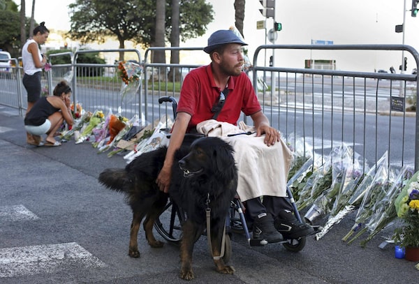 Emotions were raw across this scarred city on Friday, as citizens streamed toward the Promenade des Anglais to place flowers, candles and handmade signs. Massive white tarps were erected along parts of the seafront to protect the integrity – and dignity – of a crime scene that stretched for almost two kilometres alongside beaches that lay empty as a city mourned.