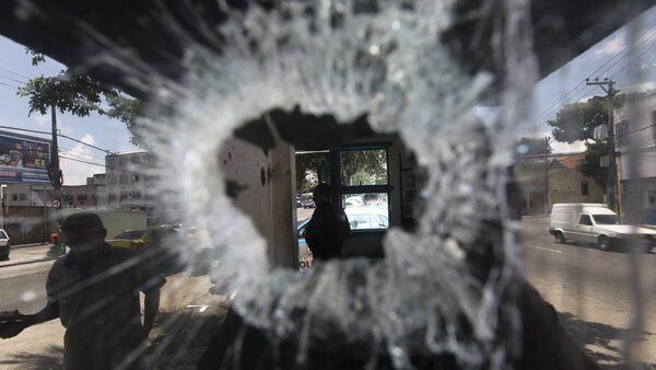 A bullet hole pierces the window of a small police station in the Del Castilho neighborhood in Rio de Janeiro, Brazil, Tuesday Nov. 23, 2010. Rio's entire military police force was ordered into the streets after more gang attacks ended with two motorists shot dead, cars burned and mass robberies on highways.Silvia Izquierdo