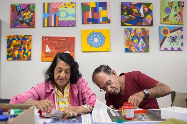 Pela Vidda aims to foster community among HIV-positive and HIV-negative Brazilians with regular arts classes. Here, Maria da Conceição Rodrigues Ferreira (72, left) and Agenor Gonçalves dos Santos (77, right) put the finishing touches on their projects.Jimmy chalk/The Globe and Mail