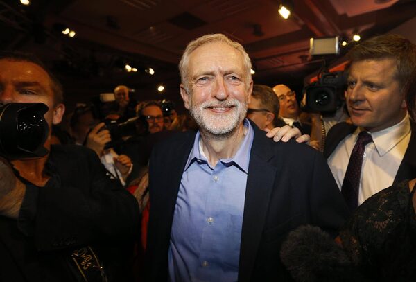 Jeremy Corbyn leaves the stage after he is announced as the new leader of The Labour Party in London, Sept. 12, 2015.Kirsty Wigglesworth/The Associated Press