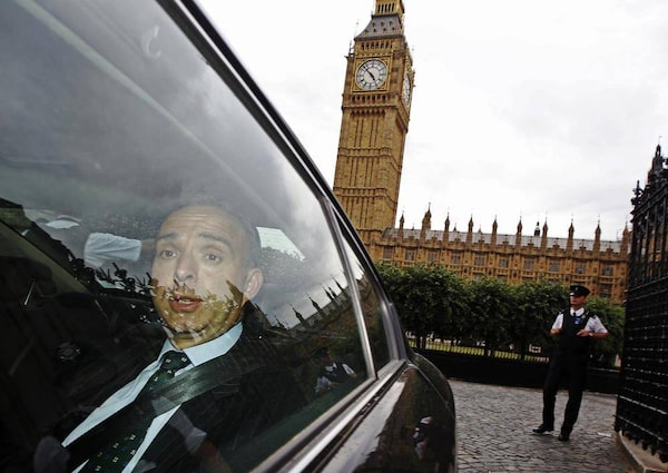 Mark Sedwill, the top civil servant at Britain's Home Office leaves the Houses of Parliament after giving evidence at a Commons Home Affairs Select Committee hearing in London July 8, 2014. One of Britain's most senior civil servants was questioned by lawmakers on Tuesday over how his department lost or destroyed files that could shed light on allegations that well-known politicians abused children in the 1980s.LUKE MACGREGOR/Reuters
