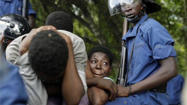 Demonstrators are detained in a police during clashes in the Musaga district of Bujumbura, Burundi, on May 4, 2015.Jerome Delay/The Associated Press