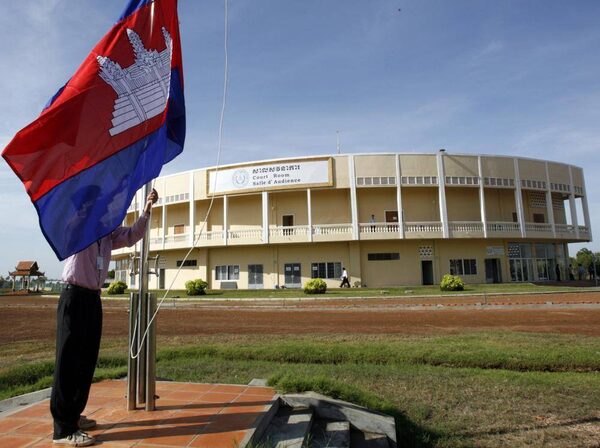 A 2007 file photo shows a worker hoisting a national flag outside the Extraordinary Chambers of the Court of Cambodia on the outskirts of Phnom Penh.CHOR SOKUNTHEA/Reuters