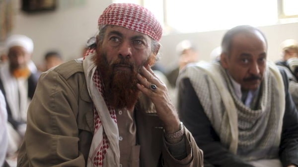 Saleh Al Zoba, a 60-year-old Yemeni formerly imprisoned at Guantanamo Bay, attends Friday prayers at a mosque in Sanaa. U.S. President Barack Obama this week suspended the repatriation of Yemeni detainees from Guantanamo.AHMED JADALLAH