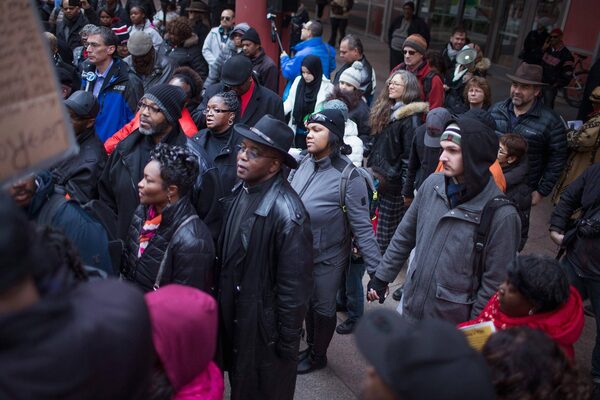Demonstrators rally at the Thompson Center in Chicago on Dec. 6 to protest the death of Laquan McDonald.Scott Olson/Getty Images