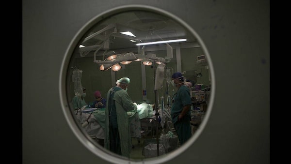 A team of Israeli surgeons and nurses lead by cardiologist Lior Sasson are seen during the surgical open heart surgery on 9-month-old Abdel-Rahman Ghouti at Wolfson Medical Center located in the central Israeli city of Holon, May 17,2011.Heidi Levine/Sipa Press