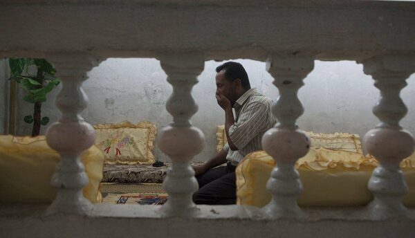 Palestinian father Ishmail Ghouti prays at his home in Rafah, Gaza May 30, 2011. His son Abdel-Rahman just weeks ago underwent open heart surgery in Israel under the sponsorship of the Israeli based Save A Child's Heart organization that offers cardiac care to children in developing countries .Heidi Levine/Sipa Press