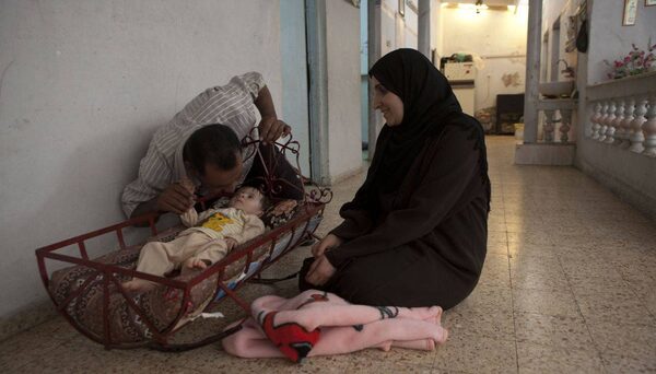 Palestinian Hanah Allatar Fayez and her husband Nizzan hold their eight-month-old baby girl Nabaa at their home in Nussarat neighborhood of Gaza May 30,2011. Doctors suspect that Nabba suffers from a serious heart condition called Tetrology of Fallot . Her medical treatment is being sponsored by the Israeli based Save A Child's Heart (SACH) organization based at Wolfson Hospital in Holon . Today she traveled to Israel for evaluation where doctors have scheduled her for surgery at the beginning of July.Heidi Levine/Sipa Press