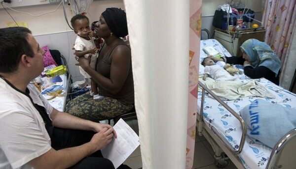 Palestinian mother Aman Tabasi from Gaza (right) with her four-month -old baby girl named Rahaf; mother Adison from Ghana with her one-year-old daughter named Pamela; and Israeli doctor Ido Leshem in the hospital ward they share together at Wolfson Medical Center located in the central Israeli city of Holon, May 17,2011. Both children are waiting for heart surgery under the program, Save A Heart ,(SACH), the Israeli based international humanitarian project that aims to provide pediatric cardiac care to children in developing countries.Heidi Levine/Sipa Press