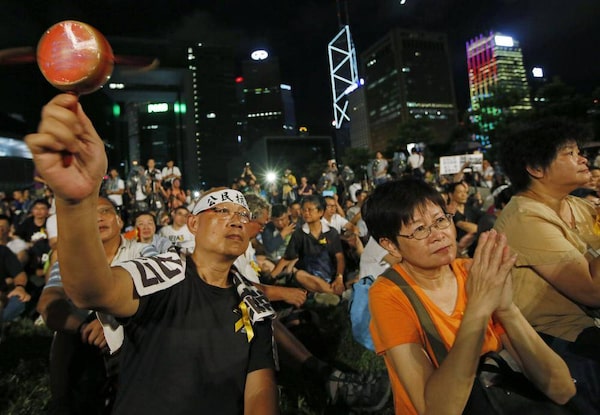 Protesters attend a protest rally in Hong Kong Sunday, Aug. 31, 2014. China's legislature's standing committee announced Sunday that all candidates must receive more than half of votes from a special nominating body to go before votersVincent Yu/The Associated Press