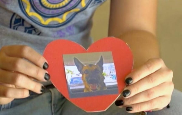 In this frame grab of video from AP Television, Julieta Robles shows a photograph of her dog "Box," in Hermosillo, Mexico, Wednesday, April 1, 2015.The Associated Press