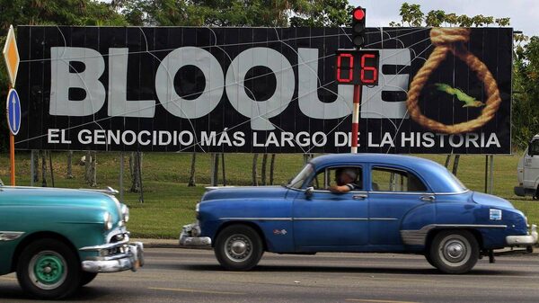 A Havana billboard: ‘Blockade, history’s longest genocide.’ENRIQUE DE LA OSA/Reuters