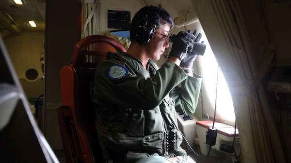A member of the Japan Maritime Self-Defence Force looks out the window of a PC3 reconnaissance plane on to the East China Sea. “We’re watching the Chinese closely, they’re watching us closely. It’s a standoff,” explained one crewman.Sean Gallagher/The Globe and Mail