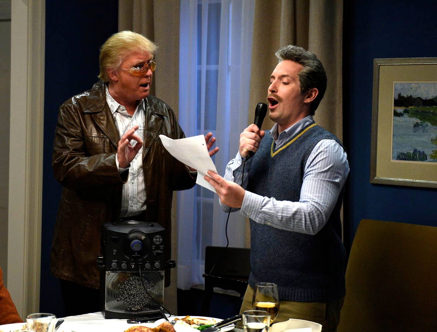 Republican presidential hopeful Donald Trump appears in a sketch while hosting Saturday Night Live.Will Heath