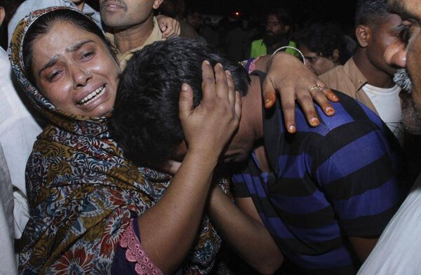 At the hospitals, relatives of the dead cried and beat their chests and heads. "My brothers, my two brothers," private Geo News TV showed a man wailing. "They both are dead."